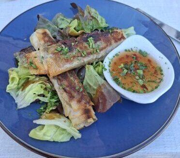 Cut a sheet of filo pastry in half, Place th filling on the pastry and roll up into Oblongs